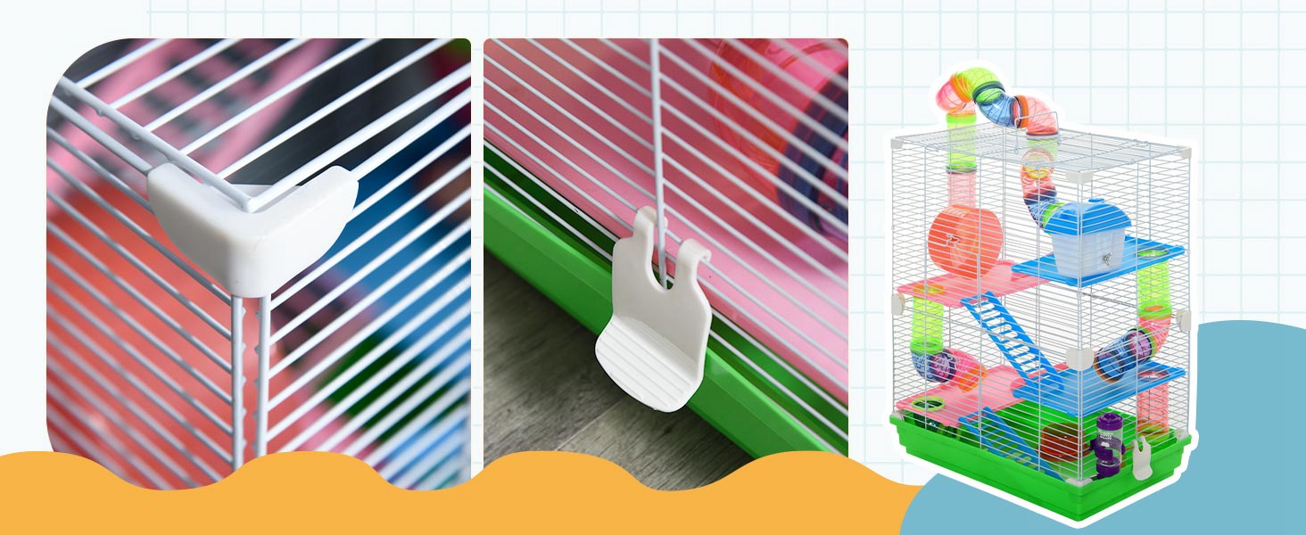 - DESIGN A PROVA DI ANIMALE: Gli accessori e la struttura della gabbia per criceto sono progettati per garantire la sicurezza degli animali, evitando il rischio che le zampe rimangano incastrate per errore